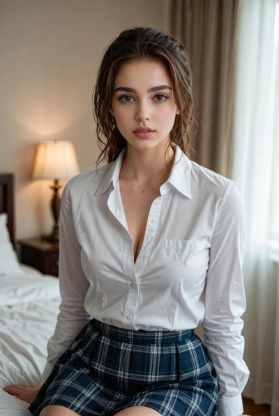 น้องฟ้ายังใส่ชุดนักเรียนเต็มยศ เสื้อขาวกระดุมครบกับกระโปรงลายสก๊อต เธอค่อยๆ ปลดกระดุมเสื้อทีละเม็ด เผยบราลูกไม้สีขาว “อกฟ้าตุงไหมคะพี่ ชอบกันรึเปล่า” เธอพูดเขินๆ พร้อมบีบเบาๆ หัวนมสีชมพูอ่อนตั้งชัน